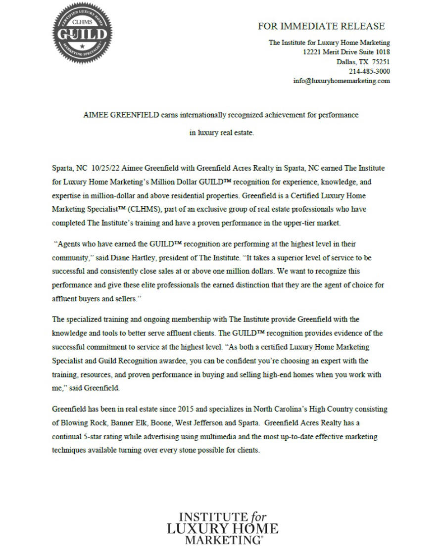 Receives Highest Award from the Institute for Luxury Home Marketing